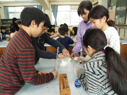 「すがたをかえる水」の単元で,氷で冷やすとどうなるかの実験をしました。