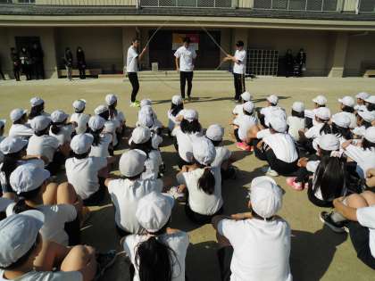 京都府ダブルタッチ協会の方に縄のまわし方と跳び方を教えてもらいました。