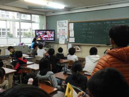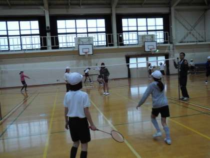 サッカー・タグラグビークラブは教室で全日本のラグビーの試合のビデオを見た後,タグラグビーのルールについて学習しました。バドミントンクラブは体育館でダブルスの試合をしました。