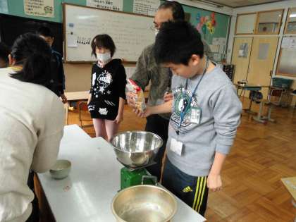 3月の誕生日会をしました。最初に役割分担して,クッキーを協力して作りました。