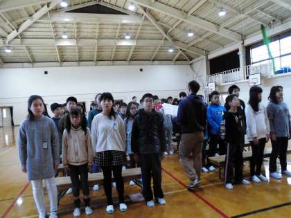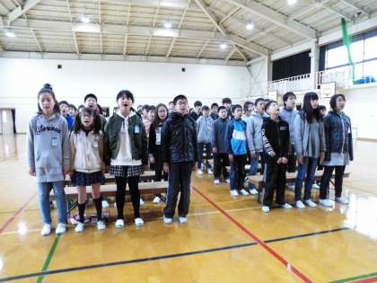 6年生は,体育館で卒業式の練習をしています。歌「明日の空へ」「旅立ちの日に」の二曲が体育館に響いています。