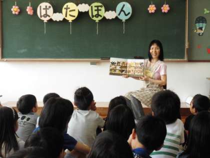 今年度初めてのぱたぽんさんの読み聞かせがありました。初参加の1年生は,絵本の世界にすっかり惹きこまれ,耳を傾けて静かに聞いていました。