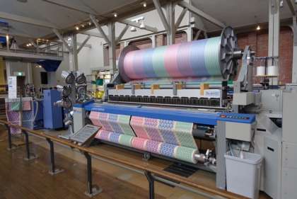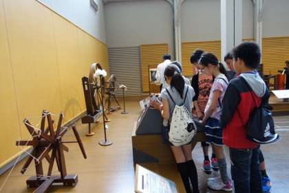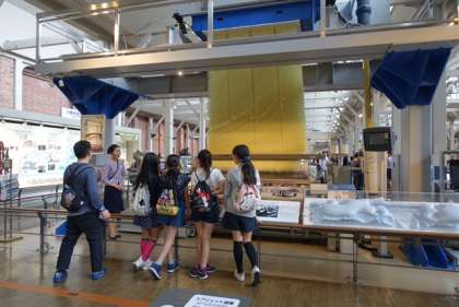 展示室は,繊維機械館と自動車館に分かれています。とても広くて,大きな機械がたくさんあり,ブースによっては実演や説明をしていただくことができました。