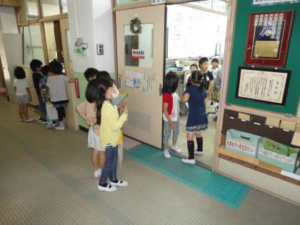 2年生が1年生を連れて学校探検をしました。1年生と手をつなぎ,「このお部屋は○○の勉強をするお部屋だよ。」と優しく教えてあげていました。