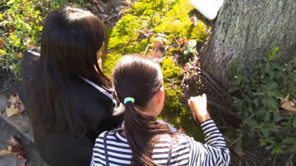 「ここがすみか」の学習では、自然のものを使って何かが住んでいるすみかを作りました。
