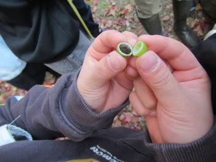 子どもたちは、自然のお土産をたくさん見つけ、