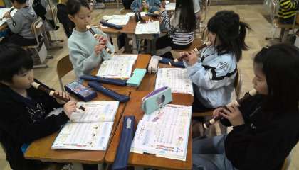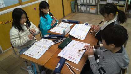 「メリーさんの羊」をリコーダーで上パートと下パートに分かれて練習しました。