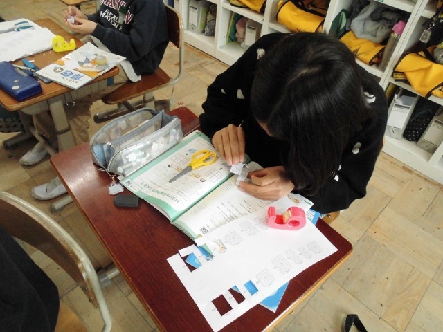 今日から算数は「直方体と立方体」の学習です。今日はまず6枚の長方形や正方形で「箱」を作ってみました。すべて長方形または、長方形と正方形でかこまれると直方体、すべて正方形でかこまれると立方体だということが分かりました。