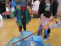 体験コーナーでは、イモリやドクターフィッシュを触ったり、魚釣りゲームをしたりして...