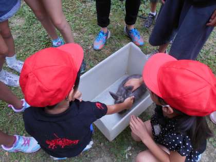 今週から飼育委員による「うさぎとのふれあい体験」が