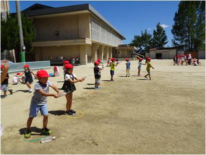 暑い中ですが元気に「まとあて」や「水とばしっこ」をして