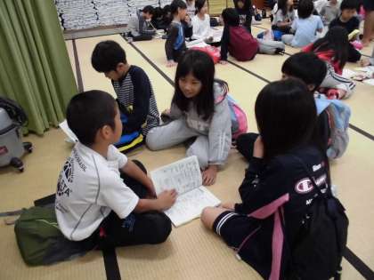 班長会議をした後,班長を中心に今日の振り返りをしました。自分たちで頑張れたことや明日に向けて直していきたいことなどを話し合いました。みんなの話しぶりを聞いていると,明日はさらに素晴らしい活動になる予感がしてきました。