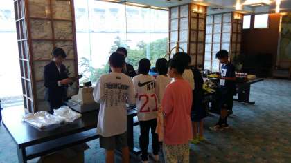 お風呂とお土産の時間になりました。お土産を買うときに、「○人家族だから、あと○つ買わな。」「合わせて4つ選ばないと。」など、悩みながら買い物をしていました。この後は夕食です。お腹がへってきていて、早く食べたそうにしています。