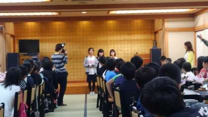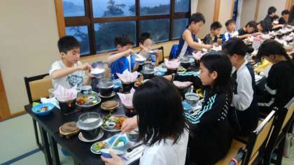 待ちに待った夕食の時間となりました。豪華な食事に驚いている子どもたち。係りの児童の「いただきます。」の声で一斉に食べ始めていました。ご飯を何度もおかわりをするなど、満足そうな様子でした。