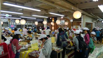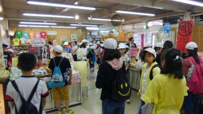 うどん学校で最後のお土産を買います。まだたくさんお金が残っていて慌てて買う児童や、すでに使い果たしてしまい見るだけになってしまった児童もいました。