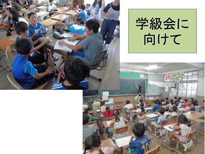 次の学級会に向けて,役割を決めたり決まった役割ごとで話し合ったりしている様子が見られました。自分たちで話し合いを進める準備の時間になっています。