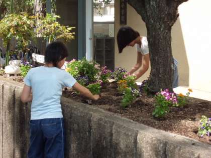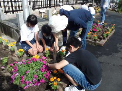 園芸委員会は,環境ボランティアの方にお手伝いいただき,花の植え替えをしました。