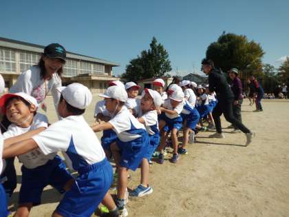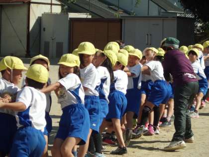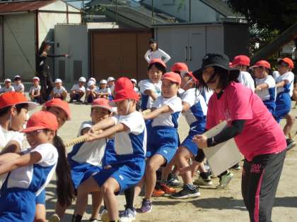 腰を低くして綱を引くのは難しいですが,みんな気合十分です。