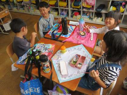 うれしそうにお弁当箱のふたを開けたり,友だちと見せ合ったり,やっぱりお弁当って特別ですね。