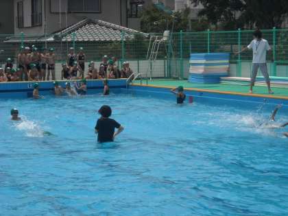 低学年の水遊びも終わり,本格的な水泳学習の始まりです。今日は3年生,4年生,5年生が順番にプールに入りました。この日を待ちわびていた子どもたち。洗濯機のよにプールの中をぐるぐる回ったり,蹴のびやバタ足の練習をしたりと水中で体をいっぱい使って運動しました。去年よりもたくさん泳げるように自分の目標に向って頑張ってほしいです。