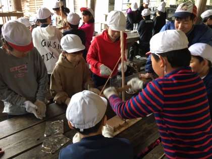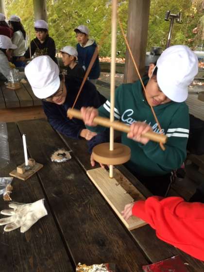 グループで協力して火をおこします。