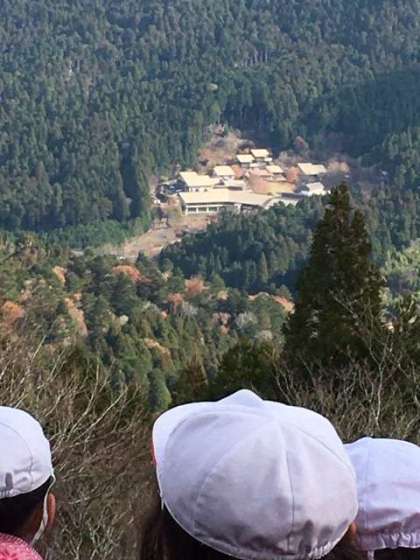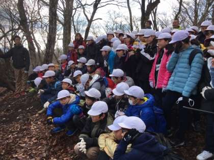 山の家が見えるヤッホーポイントから、全員で「ヤッホー!!」と叫ぶと、山の家で待機の美河先生から「ヤッホー!!」と応答があり、全員で大歓声でした。ライトでピカピカの応答もありました。