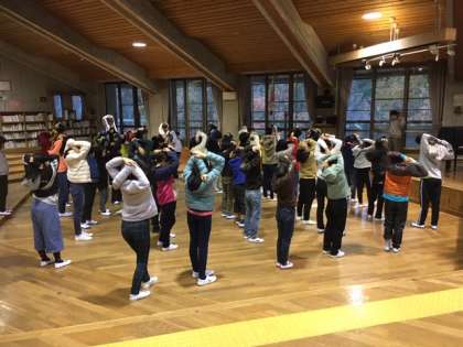 感謝の活動、昼食、退所式で、13時45分に出発の予定です。