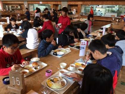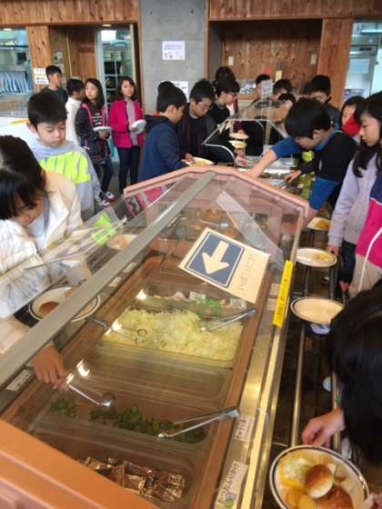 昼食はチャーハンかきつねうどんを選んで食べます。