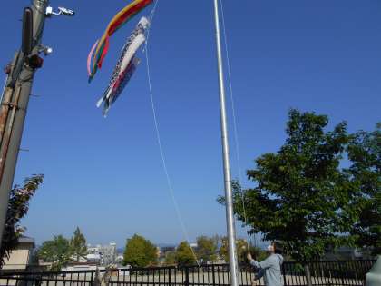 しょうようしょうがっこうにも,こいのぼりがあがりました。