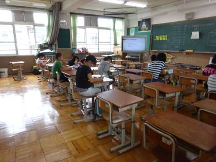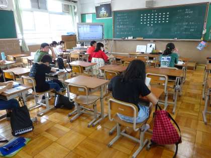 休校中の宿題に集中して取り組む子どもたちの様子です。