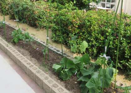 2年生の畑では,野菜の苗がぐんぐんと大きく育ちました。