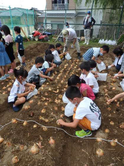 「せんせい,おおきなたまねぎがとれたよ!」