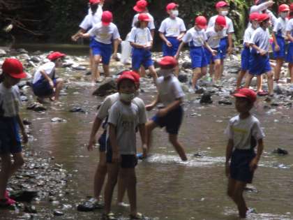 大きなサワガニを見つけたり,石でダムを作ったりと大はしゃぎでした。