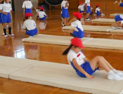 体育科の学習では,『マットあそび』が始まりました。
