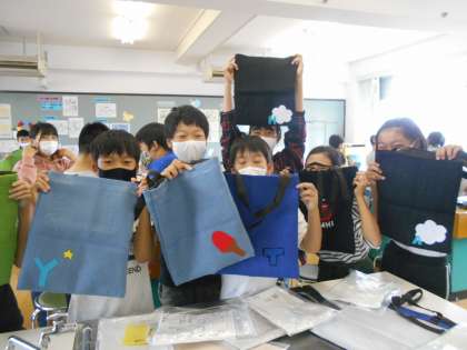 今回は袋を作るだけでなく,フェルトで自分オリジナルのポイントを付けました。