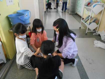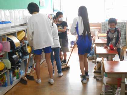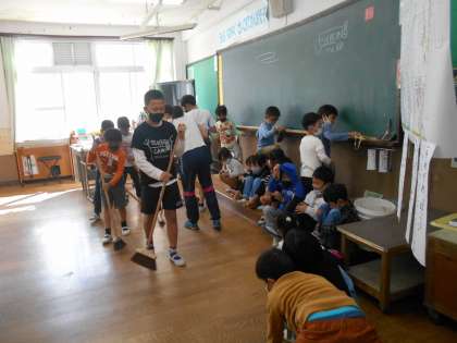 ぞうきんの絞り方やほうきのはき方などお兄さんお姉さんの姿が見せられました。
