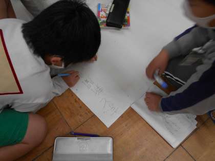 生活科『大すき いっぱい わたしの まち』の新聞づくりをしています。