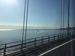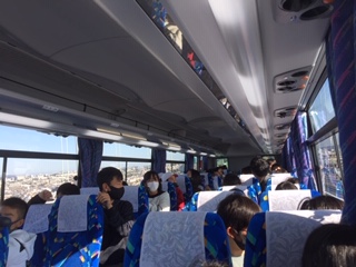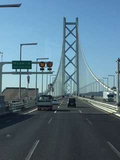 現在、明石海峡大橋を通過しました。素晴らしい景色に子どもたちから歓声が上がっています。