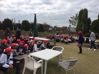 イングランドの丘に到着しました。マスクの着用やグループ行動など、大切なことを確認しました。この後は、お楽しみの昼食です。