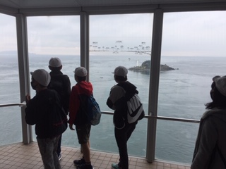 渦の道では、渦潮を見られるだけでなく、太平洋に広がる大海原を眺めることができます。雄大な海の景色に囲まれて、子どもたちもとても良い表情です。