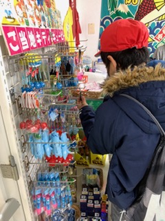 渦の道を見学するグループと交代で、お土産を買いました。贈る相手のことを思いながら品定めをする子どもたちの目はいたって真剣。お気に入りのお土産を選ぶことができたかな?