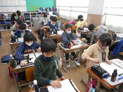 毛筆もだいぶ慣れてきた様子で,