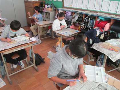 1月21日(木) 4年生 図画工作科『色付け』