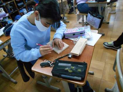図画工作科の学習で卒業制作としてオルゴールの箱をデザインしています。