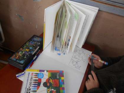 国語の学習では,1年生におすすめの本を紹介するポスターを作っています。