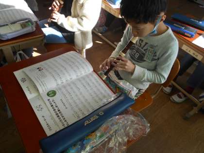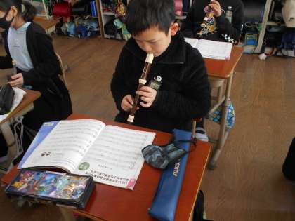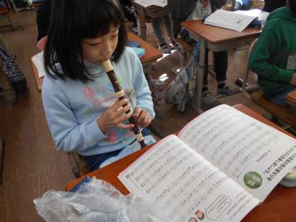 リコーダーの練習を
