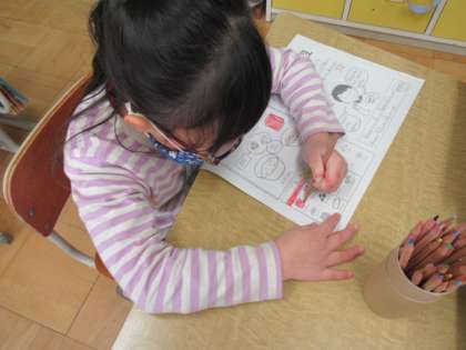 いろいろな色をつかって,ていねいにぬっています♪