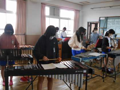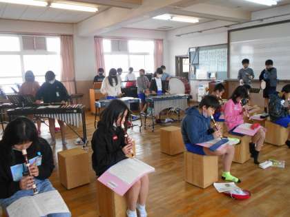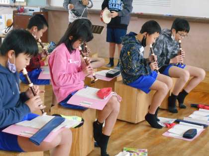 音楽の学習で「旅立ちの日に」の合奏の練習をしています。