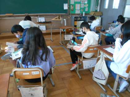 アメリカ・中国・韓国・サウジアラビアの4か国の中から自分の興味のある国について,教科書や資料集,図書室の本を使って調べています。
