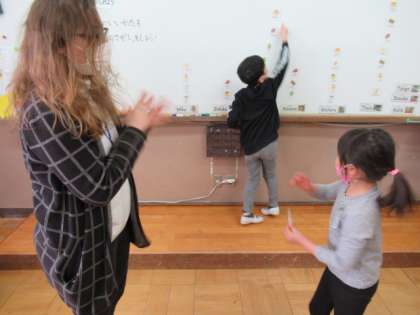 「食べ物さがしゲーム」では,見つけた食べ物カードを正しく読むこともできていました。